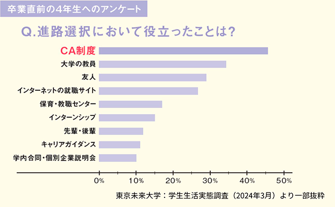 - 入学前から卒業後までキャンパスアドバイザー(CA)による一貫したサポートは、学生の強力な伴走者となります。